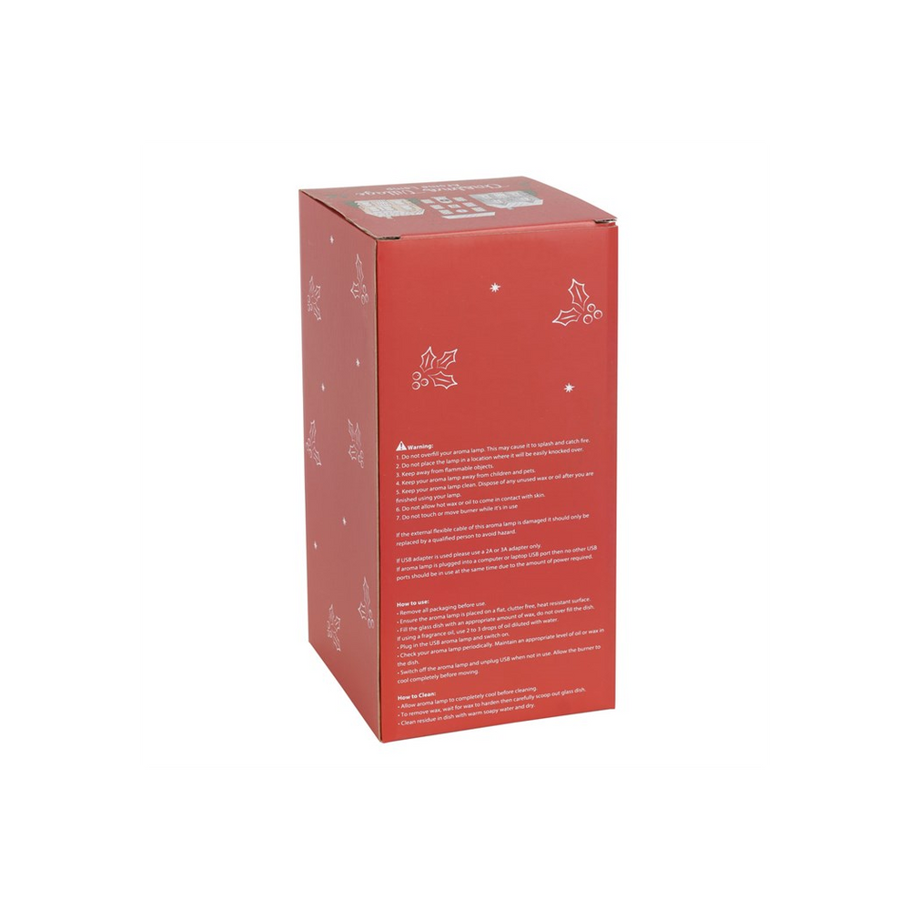 Create a cosy atmosphere this winter with this electric aroma lamp which can be used with fragrance oils or wax melts. Featuring a Christmas village design which lights up when the lamp is switched on while fragrancing the home. Simply add wax or diluted oil to the inner glass dish and turn on to warm.