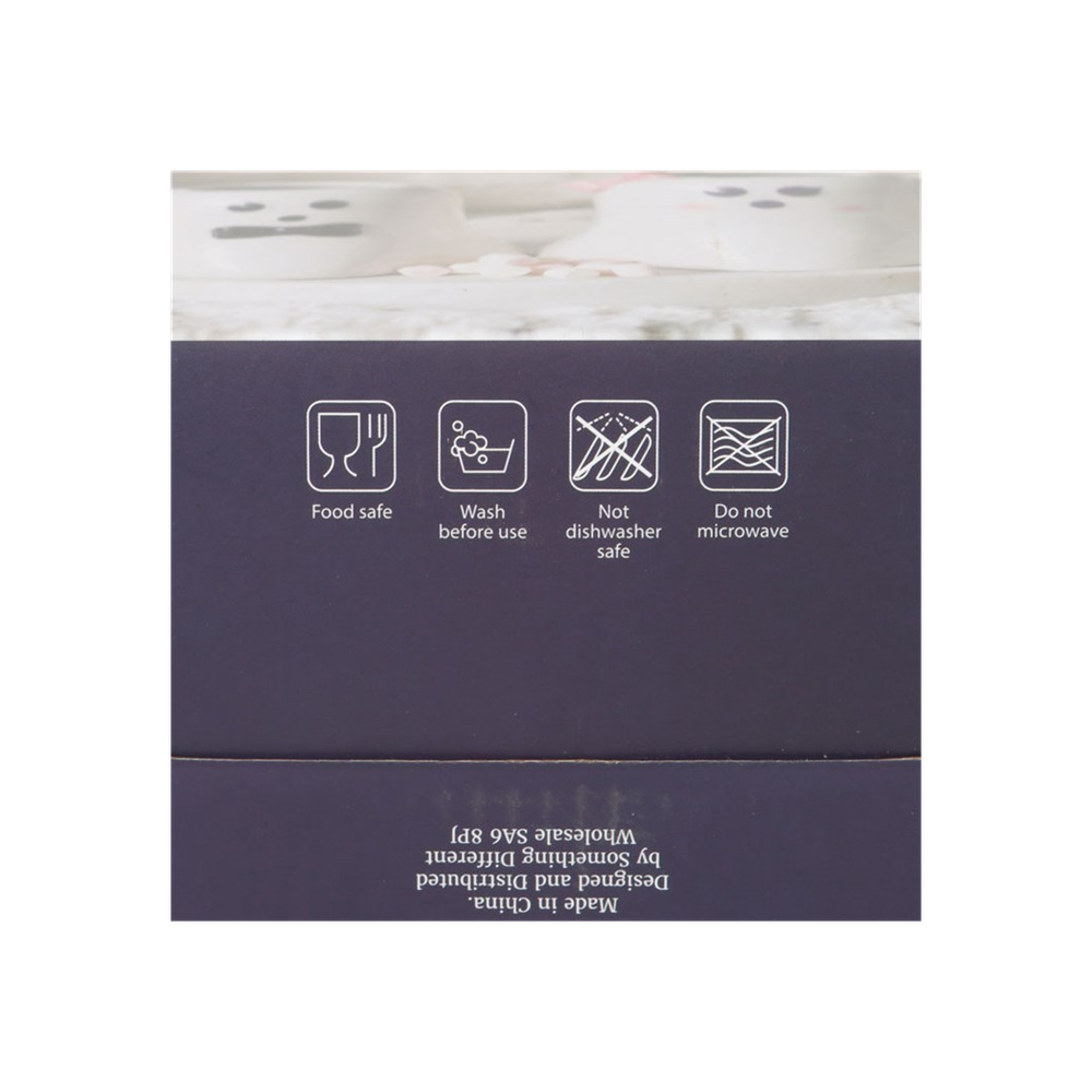 Introducing the Mr and Mrs Boo ghost-shaped mugs, the perfect pair for him and her this Halloween and autumn season. One mug features a dainty pink bow, while the other sports a sleek black bow tie, adding a touch of elegance and fun to the design. Each mug holds 440ml. Handwash only. Celebrate the spooky season in style with this adorable duo.