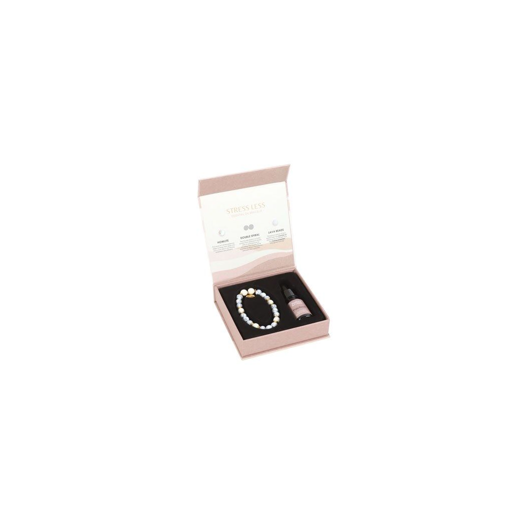This stress less lava bead bracelet and essential oil gift set uses aromatherapy to enhance the metaphysical healing power of crystals. Crafted with natural howlite and lava beads, the bracelet serves as a diffuser for the included patchouli oil, promoting calmness and clarity with its earthy, grounding elements. The addition of the double spiral charm symbolises balance, making it an ideal gift for anyone seeking tranquillity on the go. Crafted with durable materials and packaged in a luxury gift box, this elasticated bracelet combines beauty and functionality, offering a thoughtful present for various occasions.